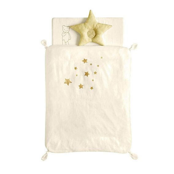 きなりにゴールドの星がワンポイントに入ったカバーは、あたたかみがありつつもシンプルなデザインで、どんなお部屋にも馴染みます。