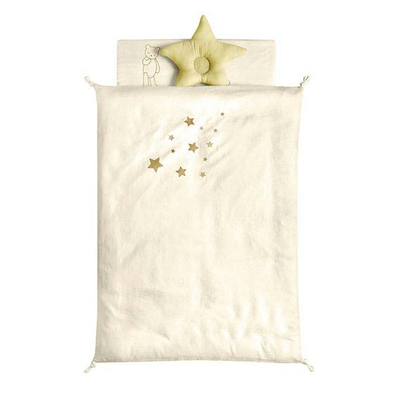 きなりにゴールドの星がワンポイントに入ったカバーは、あたたかみがありつつもシンプルなデザインで、どんなお部屋にも馴染みます。