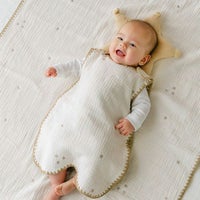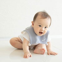 赤ちゃんの頭をやさしく包むベビーまくらとスタイのセット。