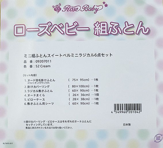 他の画像を見る 出産準備 出産祝い ミニ布団 ホワイトダックダウン 組ふとんセット 西川 ベビーミニ組ふとん 羽毛 スウィートベル ラジカル6点セット【09207011】クリーム 当店特別価格 ¥ 25,799 税込 カートに入れる お気に入りに登録する