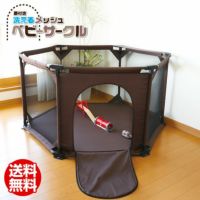 洗えるメッシュサークル♪ ヤトミ 扉付き 洗える メッシュ ベビー サークル ブラウン【CK-JI-111294】