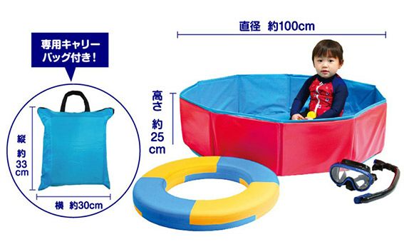 収納袋から取り出して広げて水を入れたらすぐに遊べます。わずらわしい空気入れの作業も必要ありません。