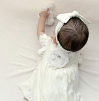 ベビーの背中に差し込んで汗を吸収しながら、後ろ姿にアクセントをプラス。