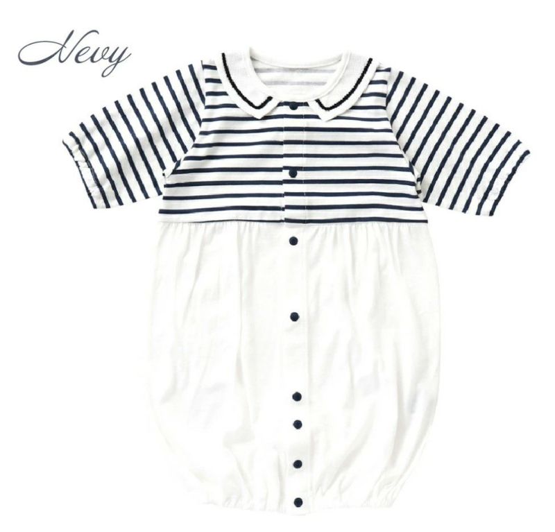 スナップの留め替えで2通りに長い間着られるベビー服 シンク・ビー 天竺ボーダー ドレスオール【25-33171】ツーウェイオール ネイビー(50-70cm)