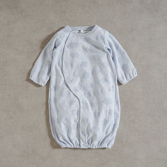 ・新生児からはおむつ替えが楽なドレス型で、足の動きが活発になったらカバーオール型に変えて使えます。