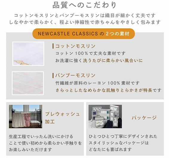 他の画像を見る 【ニューキャッスルクラシックス】 スワドルバンブーモスリン1枚入り【NC-SB2079】 Two Hearts 【日本正規品】Newcastle Classics おくるみ 当店特別価格 ¥ 2,090 税込 カートに入れる お気に入りに登録する