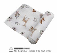 柔らかなカラーと動物のイラストがかわいいコットン100%のおくるみ ニューキャッスルクラシックス スワドルコットンモスリン1枚入り【NC-SC2055】Sierra Fox and Deer【日本正規品】