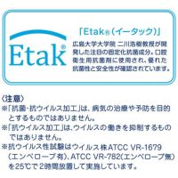 口腔内の洗浄・消毒に使われている成分をベースに開発された固定化抗菌成分「Etak(イータック)」を使用した抗ウイルス機能繊維加工素材を使用。