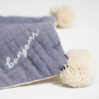 赤ちゃんの頭をやさしく包むベビーまくらとスタイのセット。
