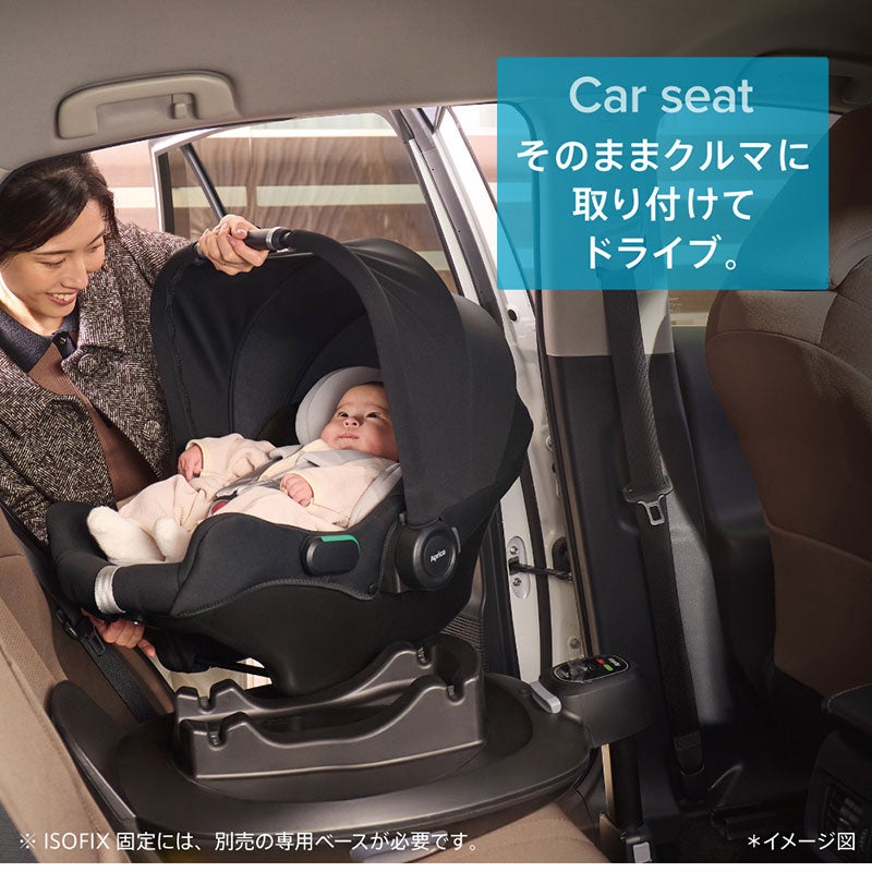 新生児から4歳頃まで使える「コンパクトベッド」型チャイルドシート アップリカ チャイルドシート マモリラ【2120201】ニンバスブラック BK