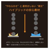 腰のある柔らかさで底突きしにくい新採用の衝撃吸収材( メモリーフィット) を使用。