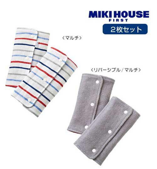 【ゆうパケット選択可】【ミキハウスファースト】ベルトパッド ベビーキャリー用(リバーシブル)ボーダー柄ガーゼ素材【45-6035-975】ミキハウス