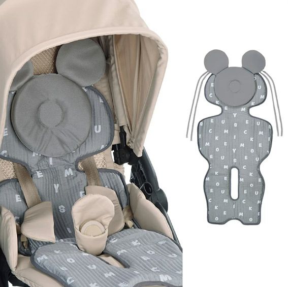 ミッキーマウスシルエットのなりきりメッシュピロー付きのベビーカーシートです。