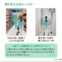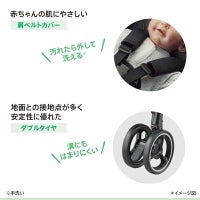 やさしい肌触りの「肩ベルトカバー」、安定性の優れた「ダブルタイヤ」