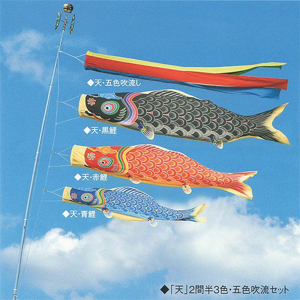 桐箱入・吹流し・黒(4.5m)・赤(3.6m)・青(2.7m)