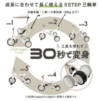 お子様の成長にあわせて5段階のパーツチェンジで