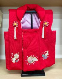 5. ひな祭り 被布 赤 ちりめん うさぎに毬桜【002】飾りスタンド付
