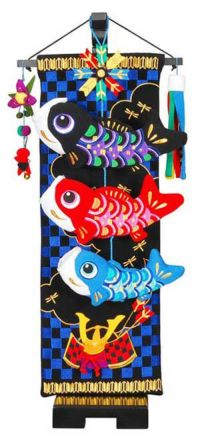 場所をとらず、収納も簡単です。 市松兜の鯉のぼり 小66cm【室内鯉のぼり】【室内飾り】【つるし飾り】