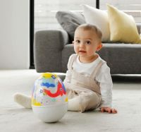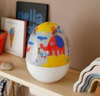 おすわりしているお子さんも、ハイハイしてるお子さんも、ゆらしやすくてやさしいたまごの形。