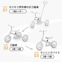 カジキリ付き三輪車⇔三輪車⇔ランニングバイクへとパーツの簡単な着脱で3