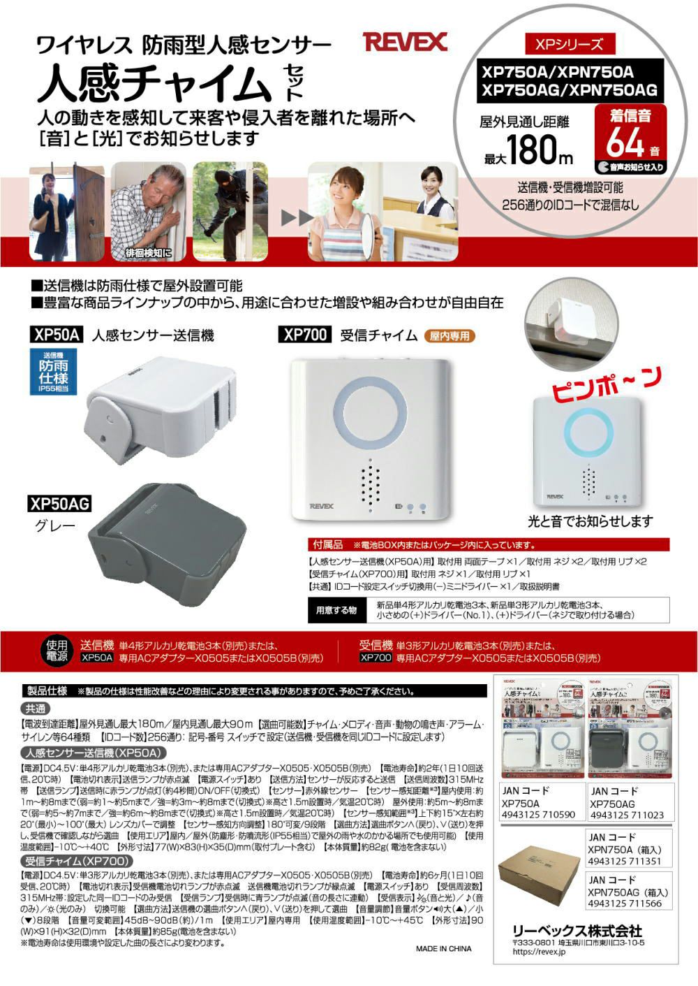 他の画像を見る XPNシリーズ 送受信機セット 防雨型人感センサー リーベックス ワイヤレス チャイム インターホン XPNシリーズ 送受信機セット XPN750A 当店特別価格 ¥ 3,719 税込 在庫切れ 詳細を見る お気に入りに登録する