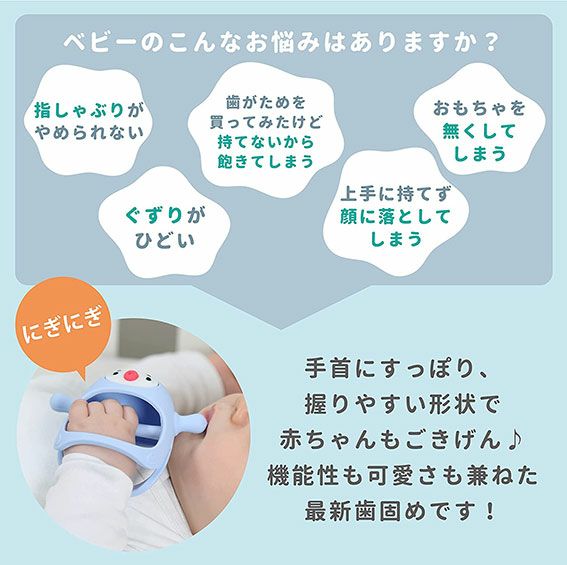 他の画像を見る 手首にすっぽりにぎりやすく落っこちにくい かわいいペンギンの歯固め スマイリーミア ウェアラブル歯がため ペンギン グレー【M12030-3】おしゃぶり【日本正規品】 定価 ¥ 1,650 のところ 当店特別価格 ¥ 1,650 税込 カートに入れる お気に入りに登録する