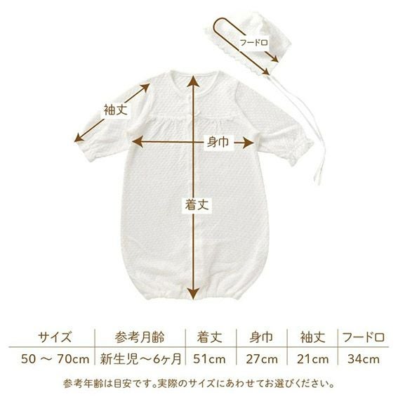 他の画像を見る 退院 お宮参り 写真撮影 セレモニードレス シンク・ビー フード付きドレスオール【26-14531】ツーウェイオール(50-70cm)日本製 定価 ¥ 5,478 のところ 当店特別価格 ¥ 5,478 税込 カートに入れる お気に入りに登録する